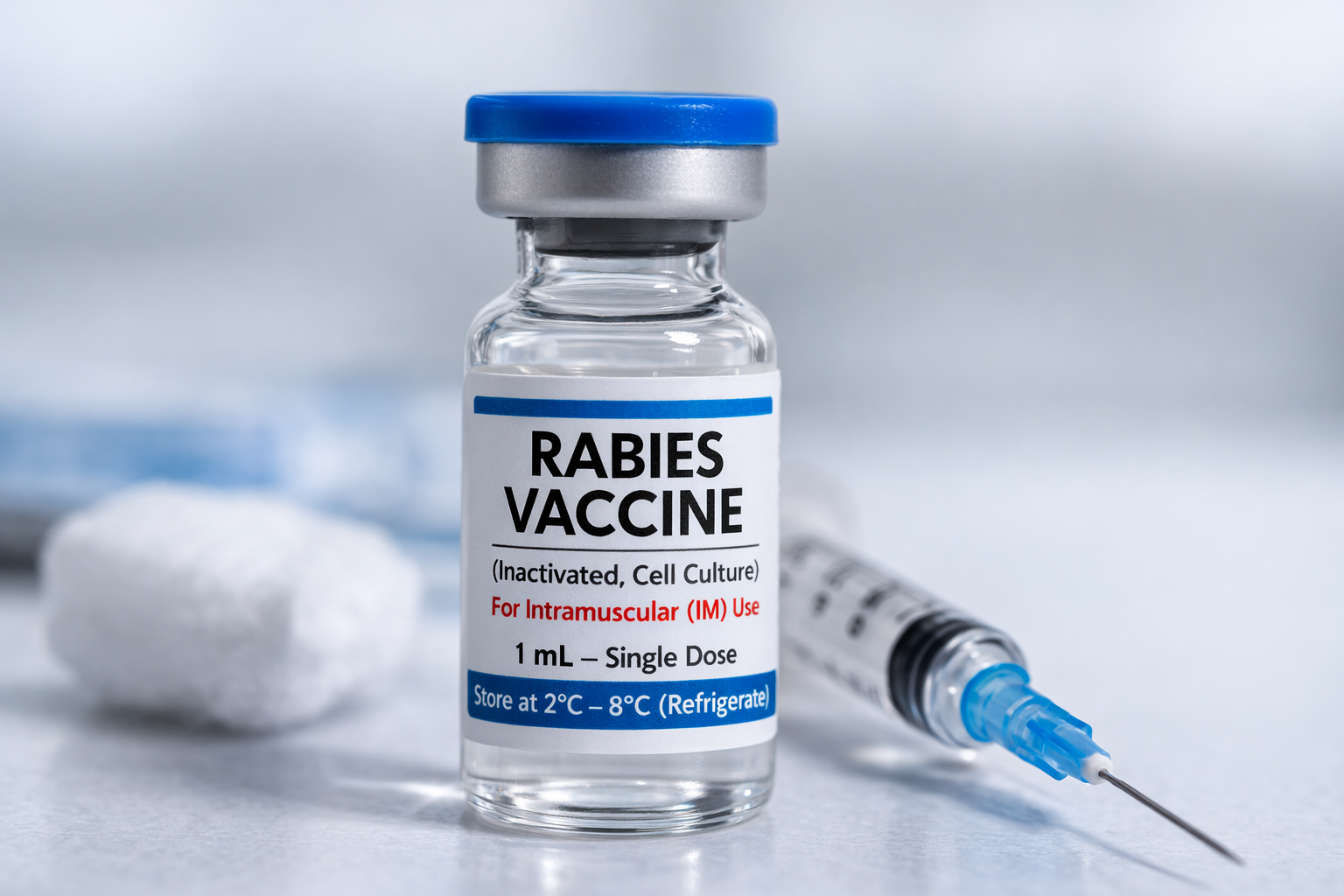 Rabies is transmitted through the saliva of an infected animal. The virus in the saliva can enter the body through a bite or scratch. It then travels through the nerves of the body and eventually into the brain.